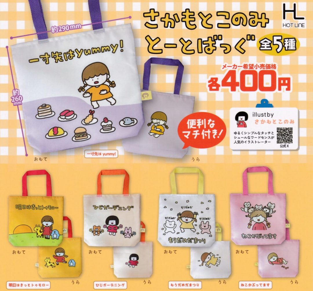 2025/11/07 カプセルトイ 2025年11月カプセルトイ「さかもとこのみ とーとばっぐ」発売 ホットラインさま 2025年11月カプセルトイ「さかもとこのみ とーとばっぐ」(全5種)を発売しました。 お仕事実績にもどる